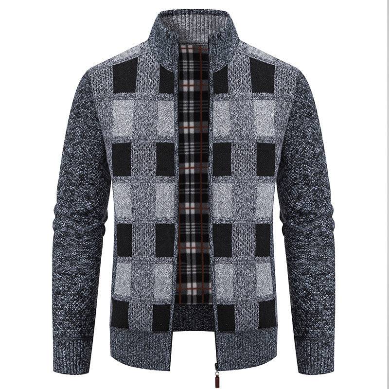 Men's New Winter Zip Up Sweater Knit Cardigan Block Print Male