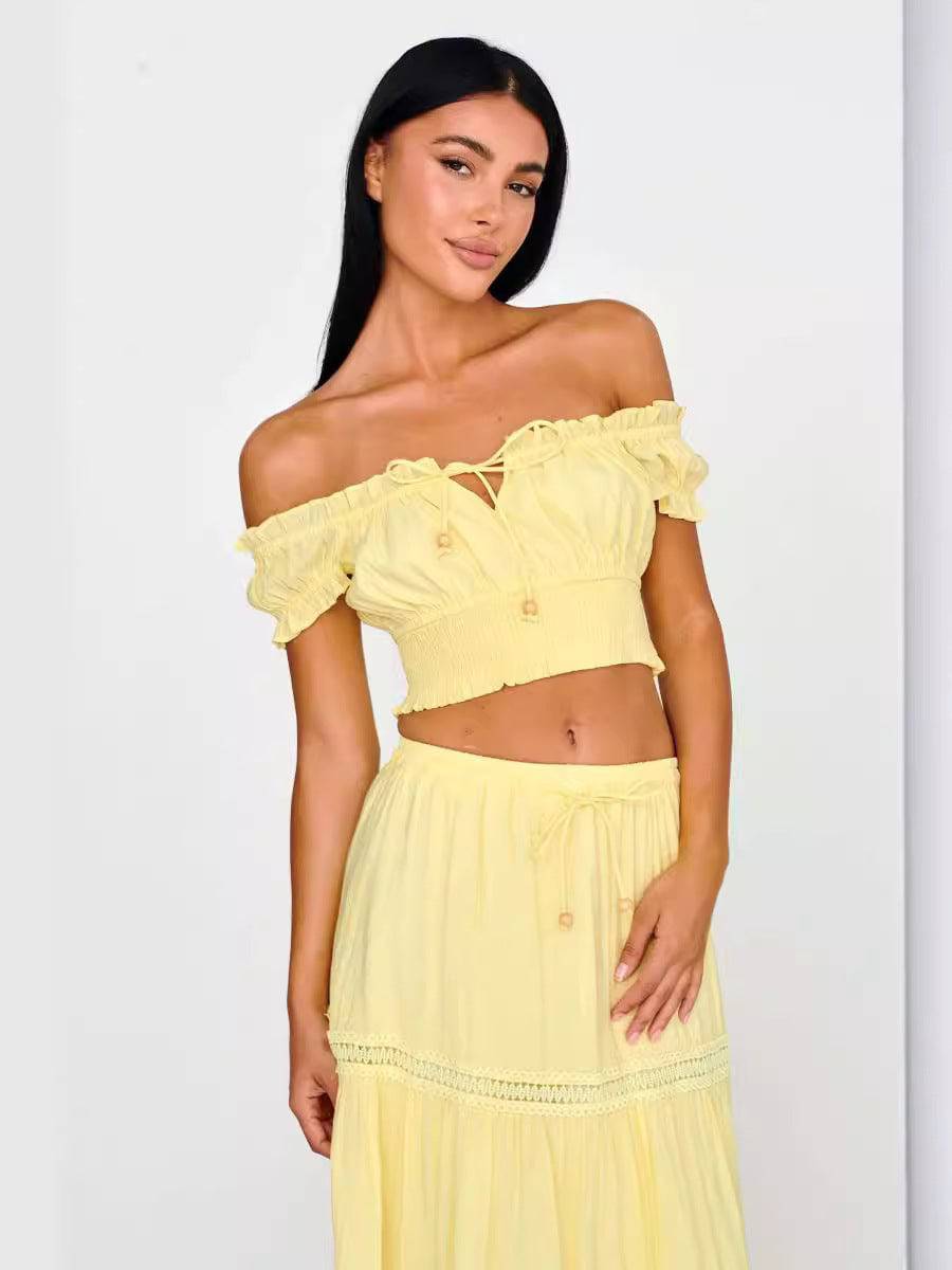 Step into the perfect blend of style and comfort with our Women's Boho Two Piece Top Bottom Cropped Lace-up Top Flowy Skirt Fashion Suit. This chic outfit is designed for the modern woman who values fashion and functionality. The cropped lace-up top adds a touch of elegance while the flowy skirt provides freedom of movement. Whether you're attending a music festival or a casual gathering, this suit is sure to make a statement